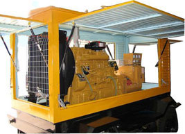 新源柴油发电机组/移动柴油发电机组设计独具创新,机动性高、重心低、制动安全、制造精良、外形美观。 新源拖车车架采用槽梁焊接成框架结构,节点选择合理、强度高、刚性好;同时装有钢板弹簧悬架结构;拖车采用高度可调节插销式牵引架,适用于各种高度牵引车;采用圆形钢管焊接直通式车轴,结构紧凑,安全可靠;车架四角设有机械式支撑装置,配备惯性行车制动、驻车制动和脱离应急制动,确保机组在各种状况下的安全;车架前端设有支撑轮,具备承受机组垂直载荷的功能的同时还具备导向功能;整车配备转向和刹车指示灯,同时装有尾灯标准插头
